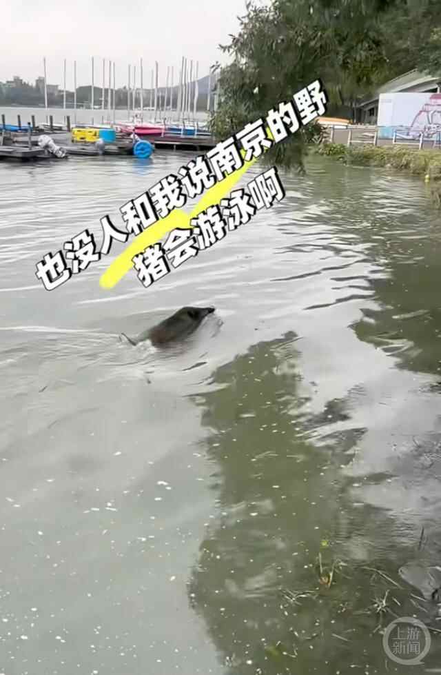 最近,南京市玄武湖景区发生了一件让游客啧啧称奇的事:一头野猪在湖中游泳横渡,引起了游客围观。