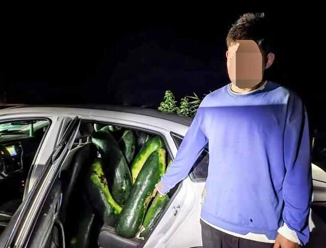 今年9月以来,安徽宿松县多家农户种植的冬瓜在夜间被盗。民警通过蹲守,将正在偷瓜的沈某抓获,冬瓜大盗车后座塞满赃瓜。