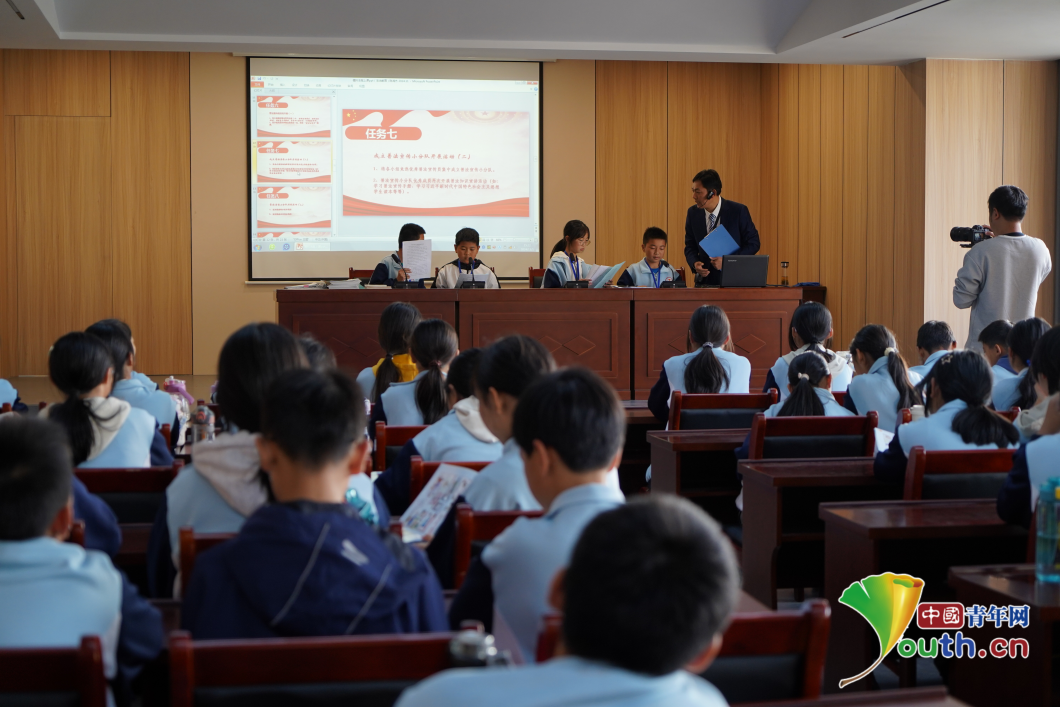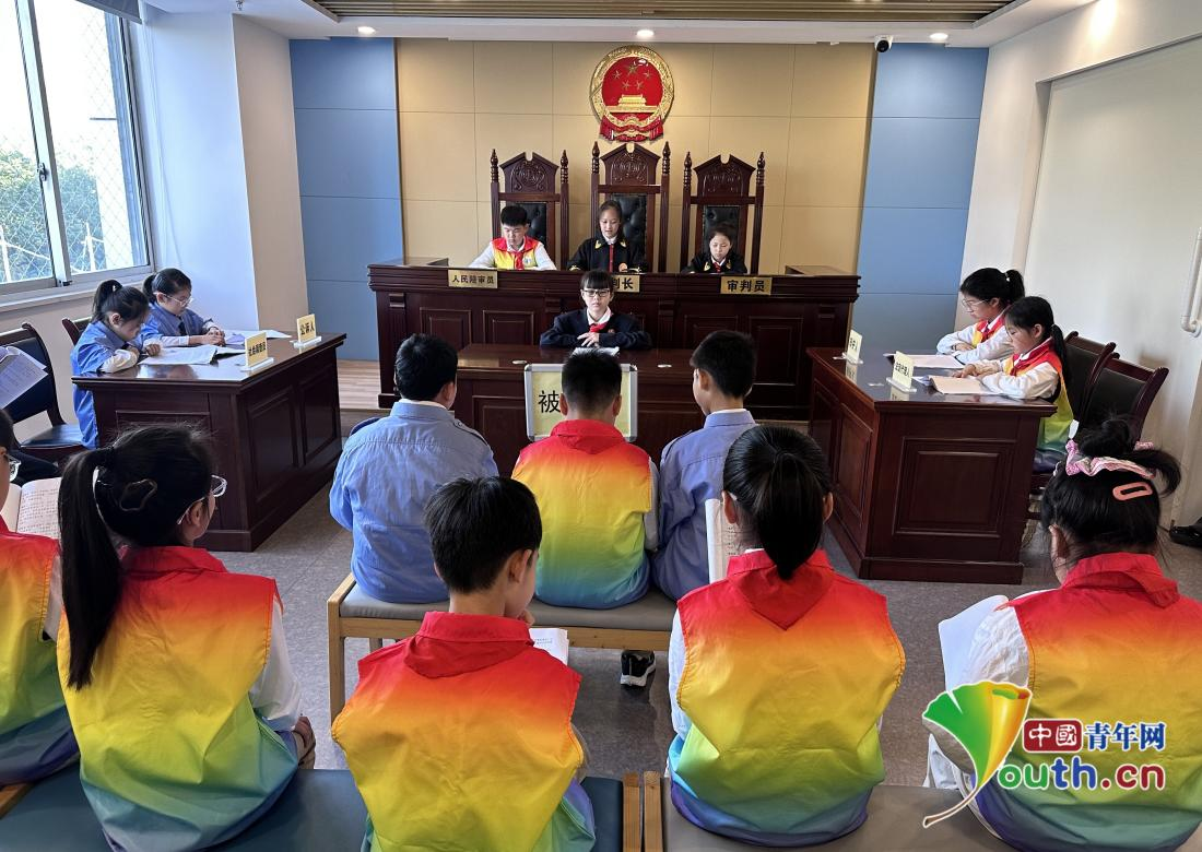 “模拟小法庭”正在“开庭办案”。中国青年网记者 田昕禾摄