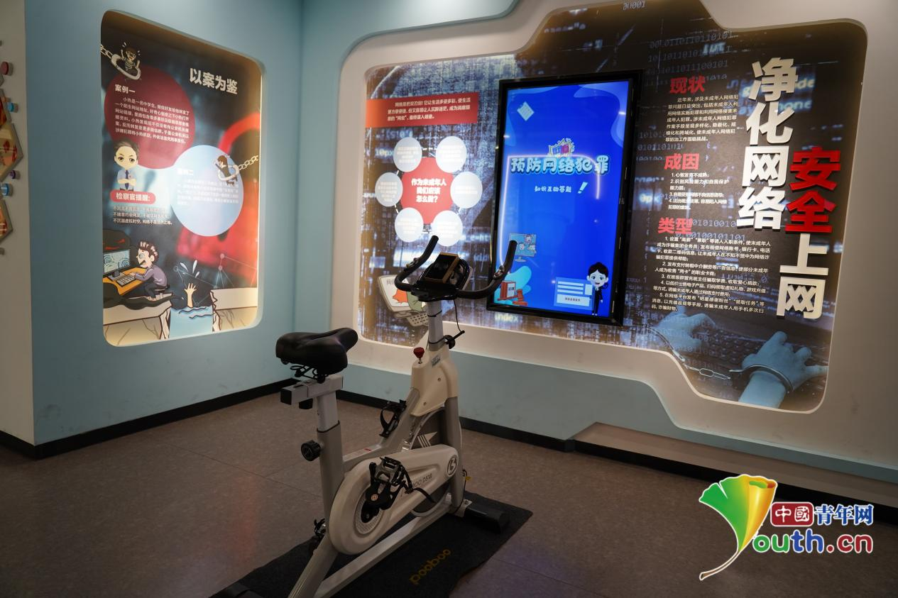 记者观察到,针对未成年人“早触网”和“常触网”这一普遍现象,场馆特别设有“净化网络 安全上网”板块,内容重点涉及未成年人网络打赏、网络暴力、网络诈骗、隔空猥亵等常见网络问题。孩子们可以通过“单车闯关”答题游戏,在寓教于乐的体验中学会自我保护,避免受到网络危害。