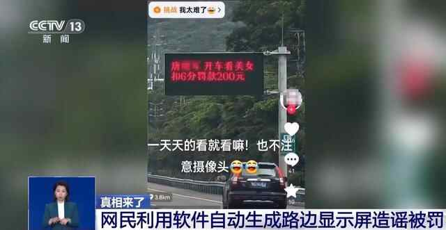 四川广安市网民张某近期利用短视频平台的“路牌改字玩法”功能自动生成路边显示屏播放“唐某某开车看美女扣6分罚款200元”样式的图文,并在短视频平台发布。