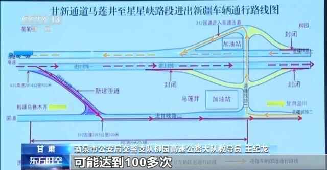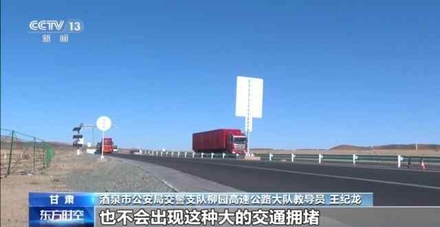 酒泉市公安局交警支队柳园高速公路大队教导员 王纪龙:我们每年这个路段的交通拥堵,可能达到100多次。