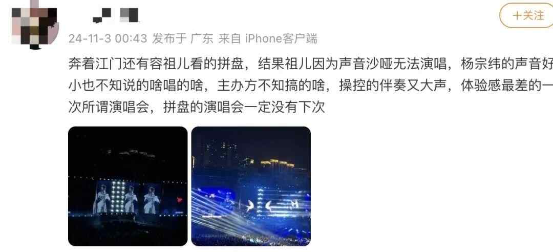 “我就是冲着祖儿才去买的票,之前也参与过拼盘演出,知道可能会注水、混时间,但没想到这次这么过分,就是MV下面大家一起大合唱,然后道歉了几句就结束了。”她表示,当时演唱会喊退票的声音很大,大家都对主办方的行为很不满。