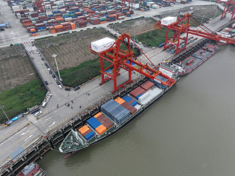 阳逻港,是习近平总书记在党的十八大后考察的第一个内河港口。