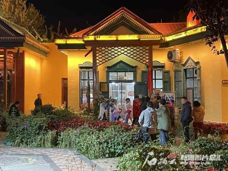 国庆节期间,夜晚游客在伊宁市六星街游玩。石榴云/新疆日报记者姚刚摄