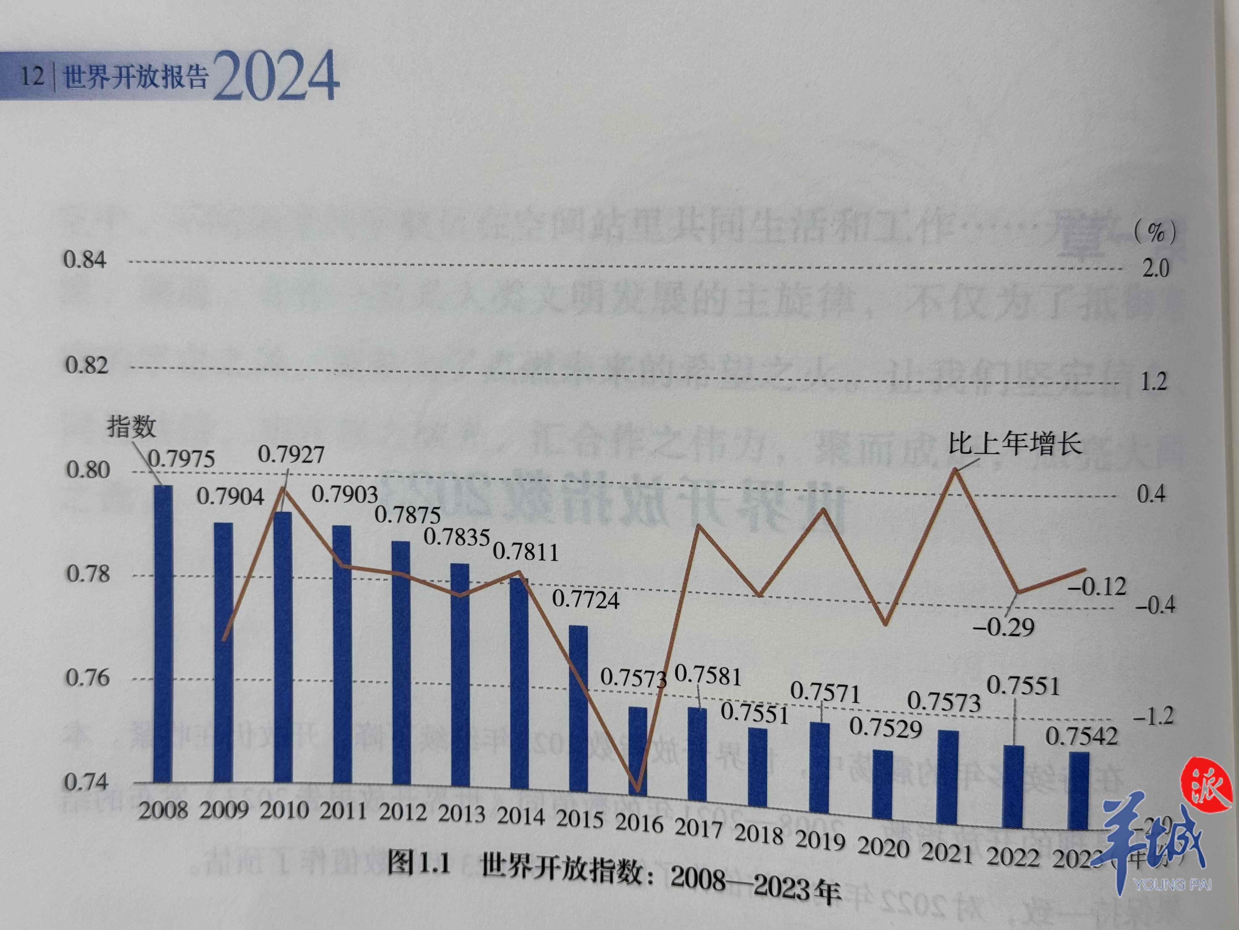 报告同时显示,开放成效不及预期。2023年,世界开放政策指数上升0.7%,但开放绩效指数下降1%,说明开放政策虽有改善,但力度不足、效果不彰。
