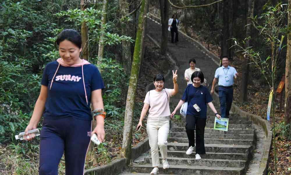 本届徒步文化节,广州市白江湖森林公园通过推出一场徒步奖金挑战赛、发布两条精品路线和“新中国的第一”成就展、全运会主题展以及白江湖自然科普展三大主题展,为市民游客提供了更为丰富的森林旅游玩法。在开幕式的徒步体验环节中,嘉宾游客在用脚丈量这个绿美生态空间时,深入地感受到沿途美丽的生态风光和深厚的人文魅力。