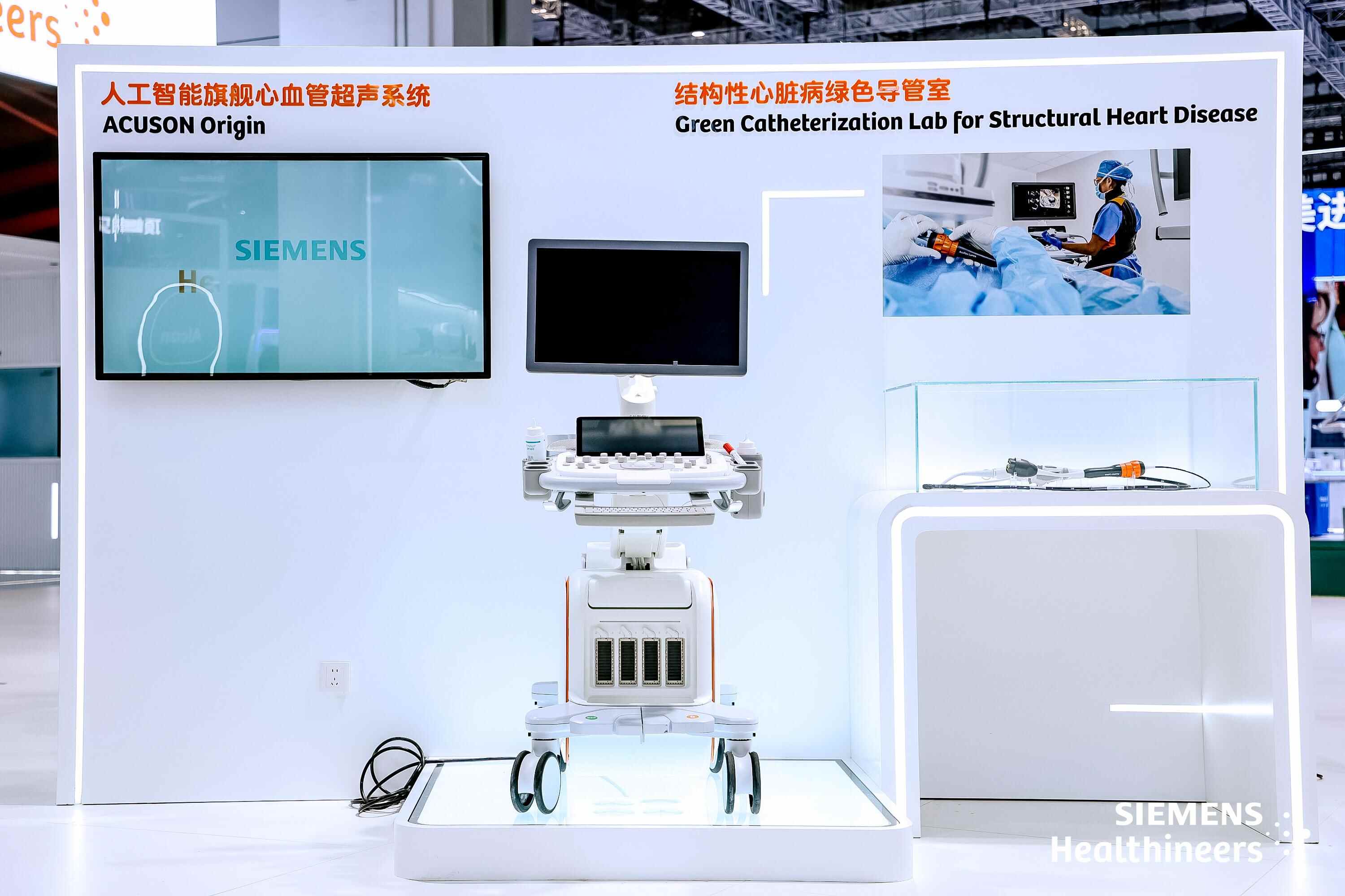 此外,西门子医疗还在中国首次展出了人工智能旗舰心血管超声系统Acuson Origin。这款超声以其强大的AI功能,为心血管超声影像诊断带来突破。与该超声系统一同亮相进博会的是新一代四维心腔内超声导管AcuNav Lumos,它能深入到心腔内部实现高清高帧频实时容积成像,在手术中如“第三只眼”引导医生进行三尖瓣等各种复杂的瓣膜修复、置换或左心耳封堵等介入治疗,提高手术的成功率和效率。