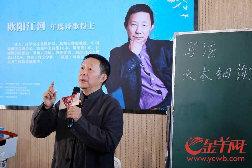 从北京来到广州,欧阳江河感受到广州温暖的天气。看到校园里新建的综合教学楼,他被校园环境打动,“一所中学建得像一所大学,可以看出广州是一座重视教育的城市。”