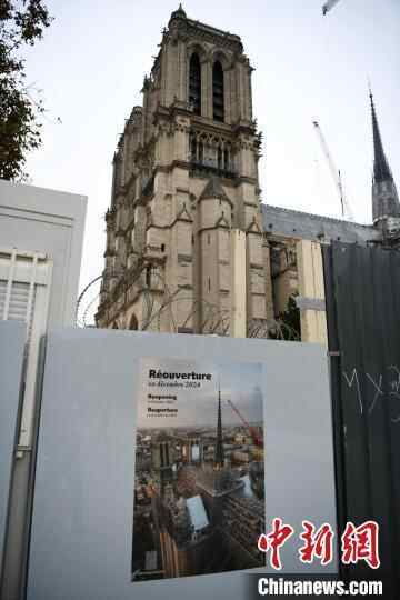 巴黎圣母院外部目前依然被围墙和铁丝网“包裹”,但在围墙上已张贴了醒目的海报,提醒人们圣母院将于12月重新开放。海报上选用的照片是俯瞰圣母院塔尖的情景。巴黎圣母院的雄姿已生动再现。