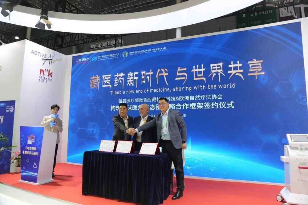 进博会上,钮曼医疗集团、西藏甘露科技与欧洲自然疗法协会也签订了构筑全球医疗生态圈战略合作框架,签约三方以藏医药为依托,携手构筑的全球医疗生态圈,未来或将成为传统与现代、东方与西方医疗文化交流互鉴的平台,让藏医药在全球医疗舞台上发挥更大的作用。