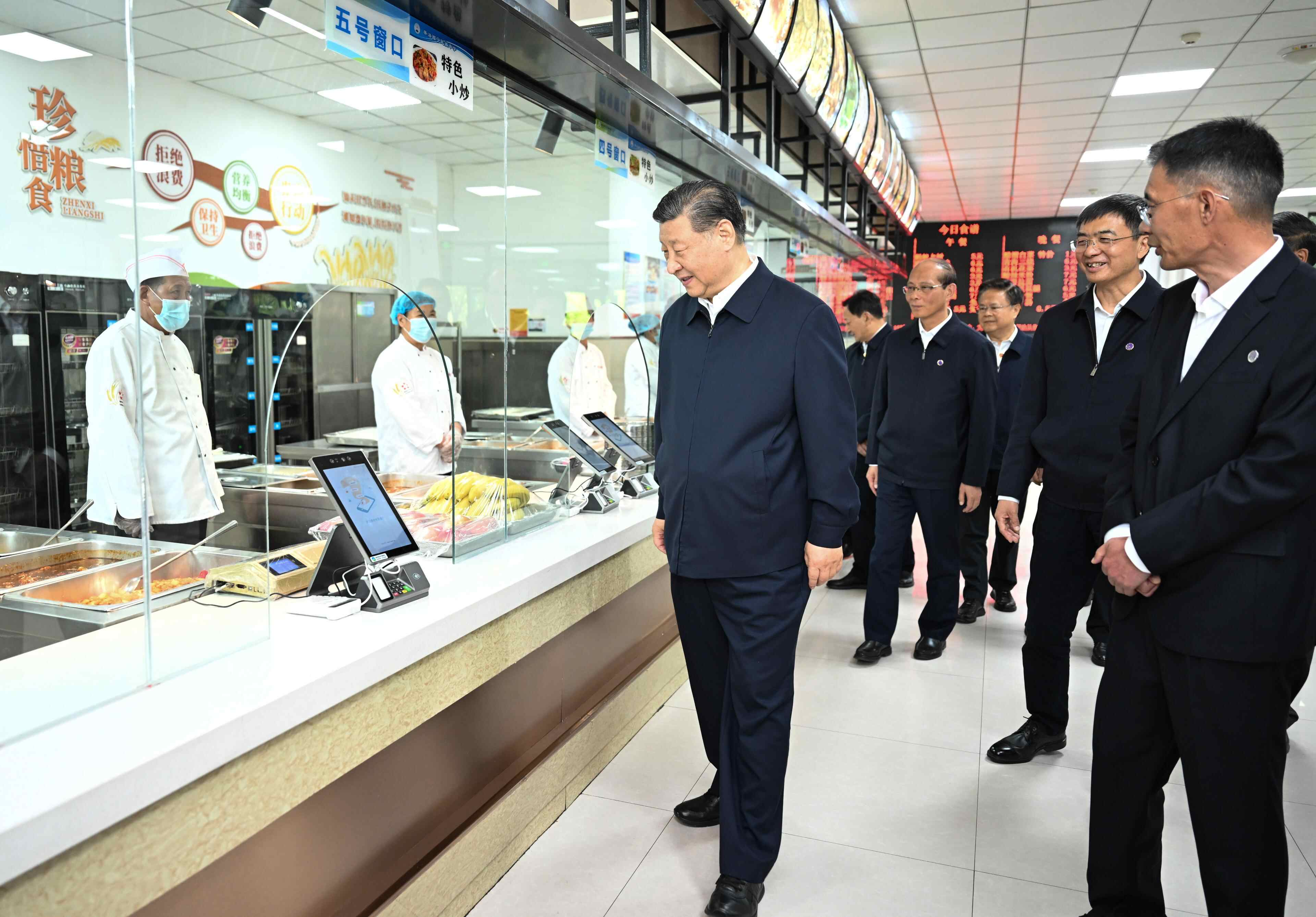 △ 2024年6月18日,习近平总书记在青海果洛西宁民族中学食堂察看学生就餐条件。