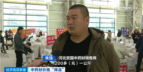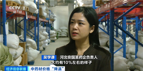 河北安国某药企负责人 吴学谦:我们这大约有10%的产品价格下降,比如一款当归头片的价格下降了40%左右。