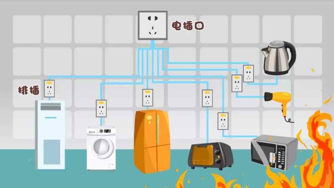 同时在一个线路上使用几个大功率用电器,会让线路严重超负荷,在没有合格的过流保护器的情况下,是很容易引发火灾的。