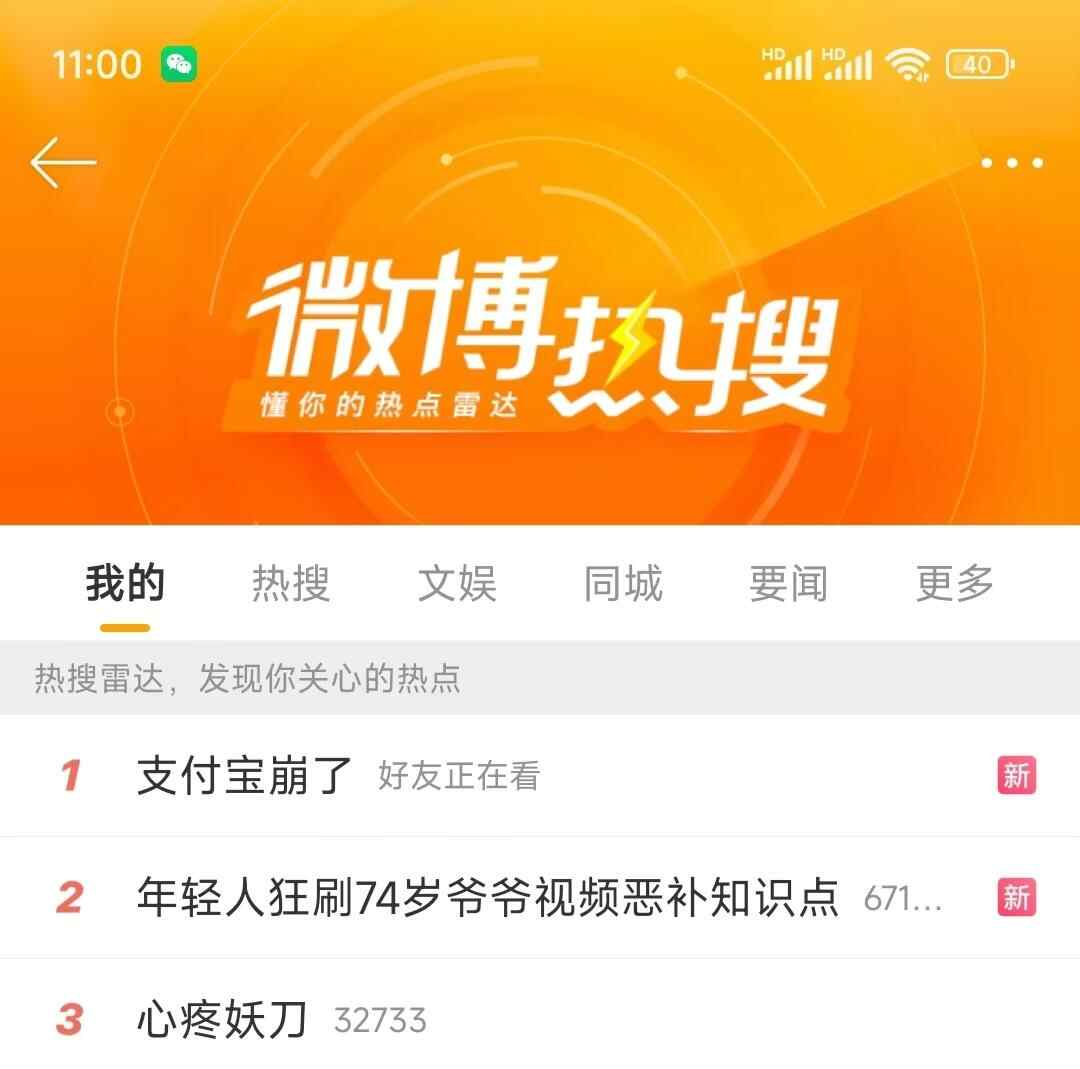 11月11日上午,#支付宝崩了#冲上微博热搜一。