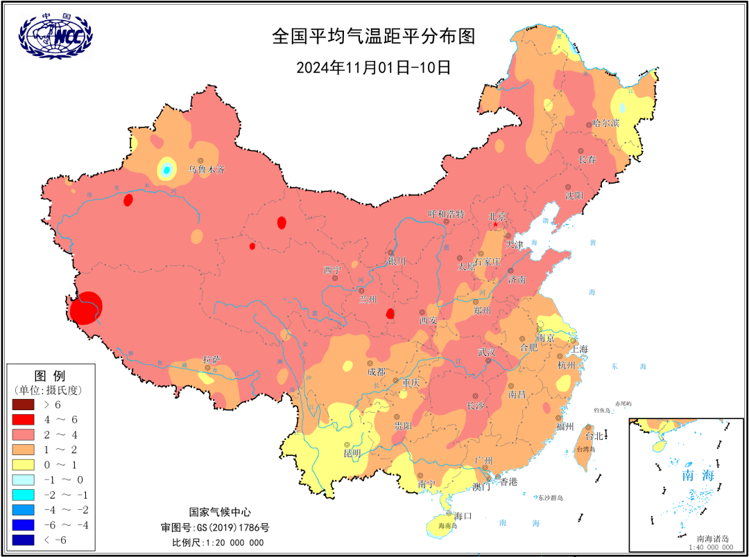 据中国天气网首席气象分析师信欣介绍,刚刚过去的11月上旬,我国平均气温较常年同期偏高2.2℃,是1961年有完整气象观测记录以来,最暖的11月上旬。