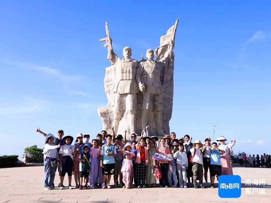 游客在临高热血丰碑下合影。记者 洪盛伟 摄