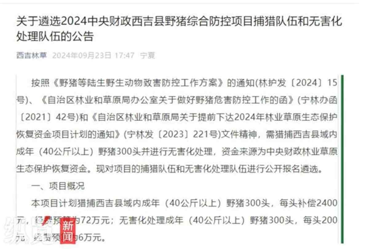 安徽、陕西、四川、宁夏等地为调控野猪数量,曾公开招募“赏金猎人”。
