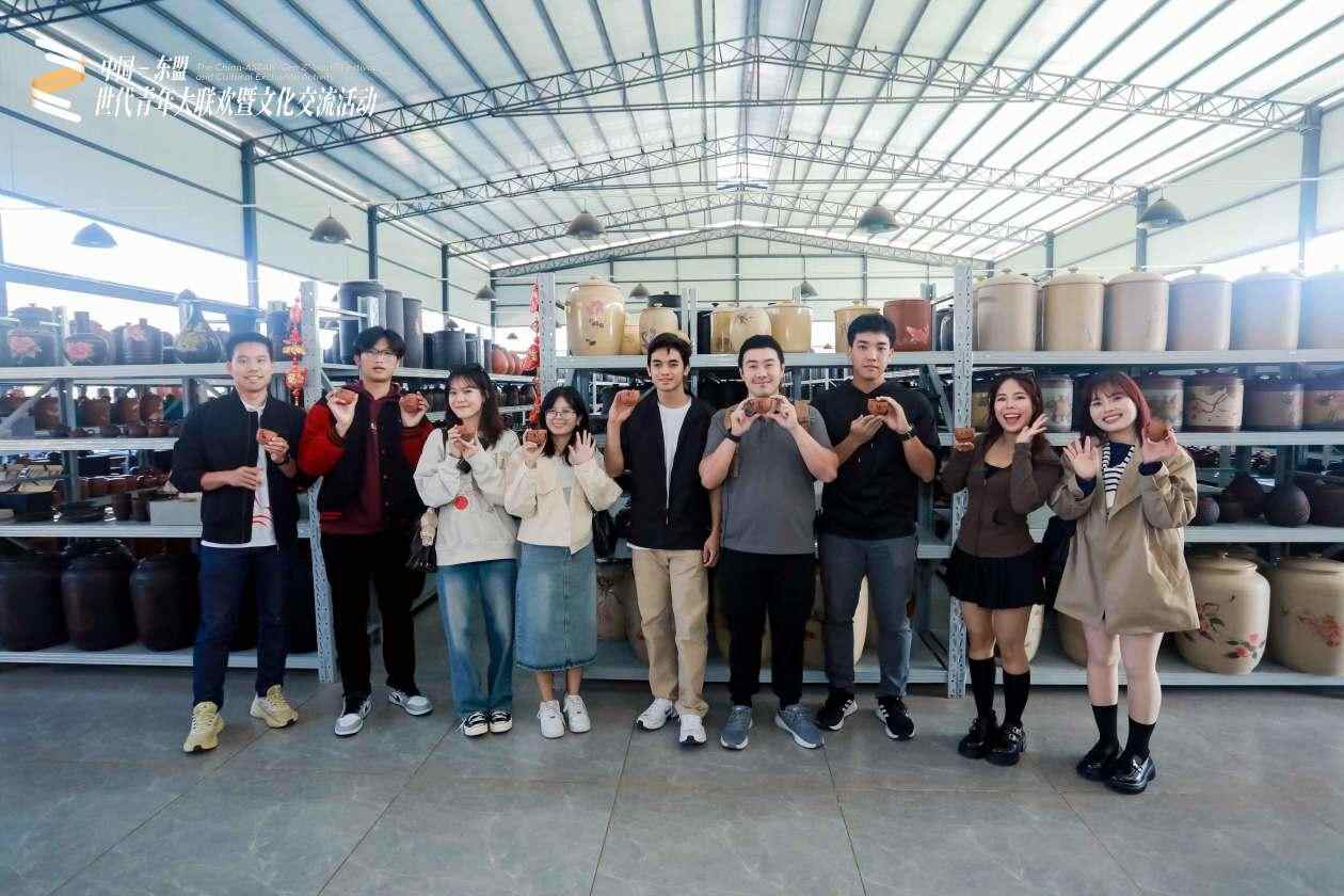 活动期间,参访团一行来到紫陶企业,近距离了解建水紫陶制作工艺。建水紫陶作为中国四大名陶之一,其独特的六大工艺——泥料制备、手工拉坯、湿坯装饰、阴刻阳填、高温烧制、无釉磨光已于2008年被列入世界非物质文化遗产名录。在紫陶制作体验环节,东盟青年们分组参与拉坯和湿坯装饰制陶过程。通过亲身实践,他们深入了解了紫陶制作的精妙之处。