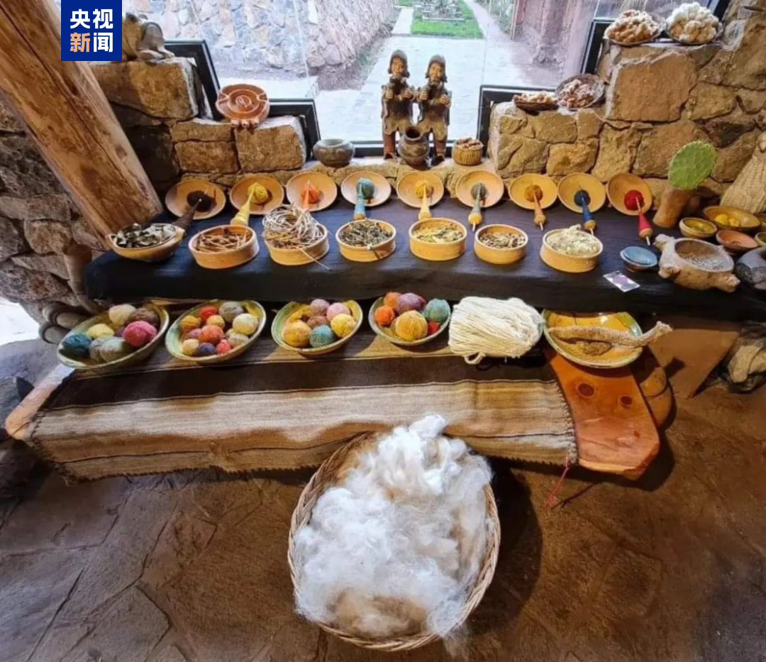 △位于库斯科的羊驼毛纺织品和南美骆驼展览中心,摆放着五颜六色的羊驼毛制成的毛线。