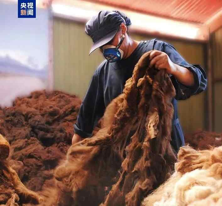 △在位于“世界羊驼之都”秘鲁阿雷基帕的一家羊驼毛编织工作室里,一名安第斯纺织工正在整理羊驼毛。