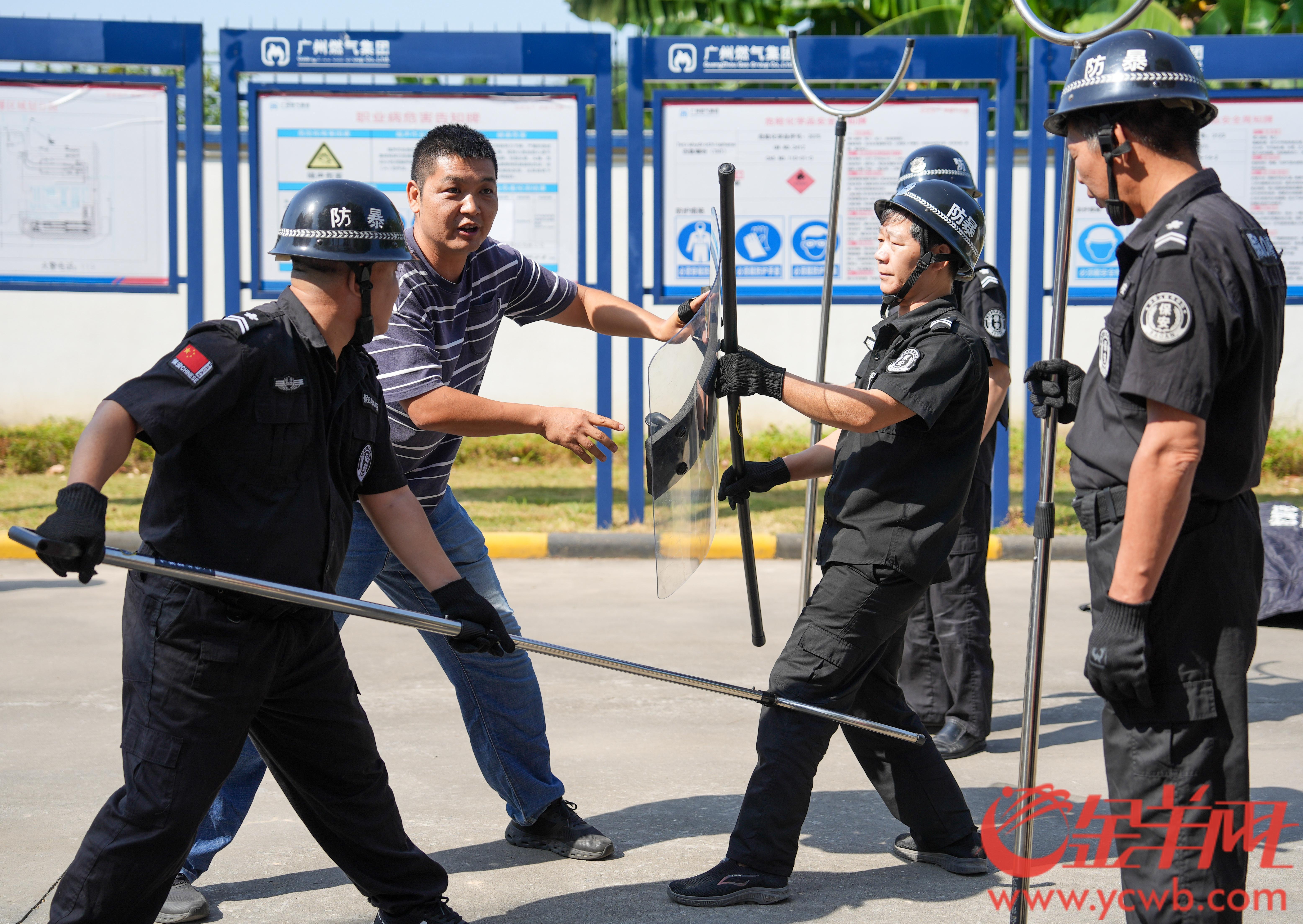在演练进行期间,城管、公安等单位对演练细节进行点评,来自增城区公安分局刑警大队的民警指导门站员工如何正确使用盾牌钢叉等装备抵御涉恐人员。除了实体演练,城管、公安等单位还向门站管理人员宣讲《中华人民共和国公共安全行业标准—城镇燃气系统反恐怖防范要求(GA1810—2022)》,并根据反恐怖防范要求对门站进行检查,确保门站所有工作内容均符合防范要求。