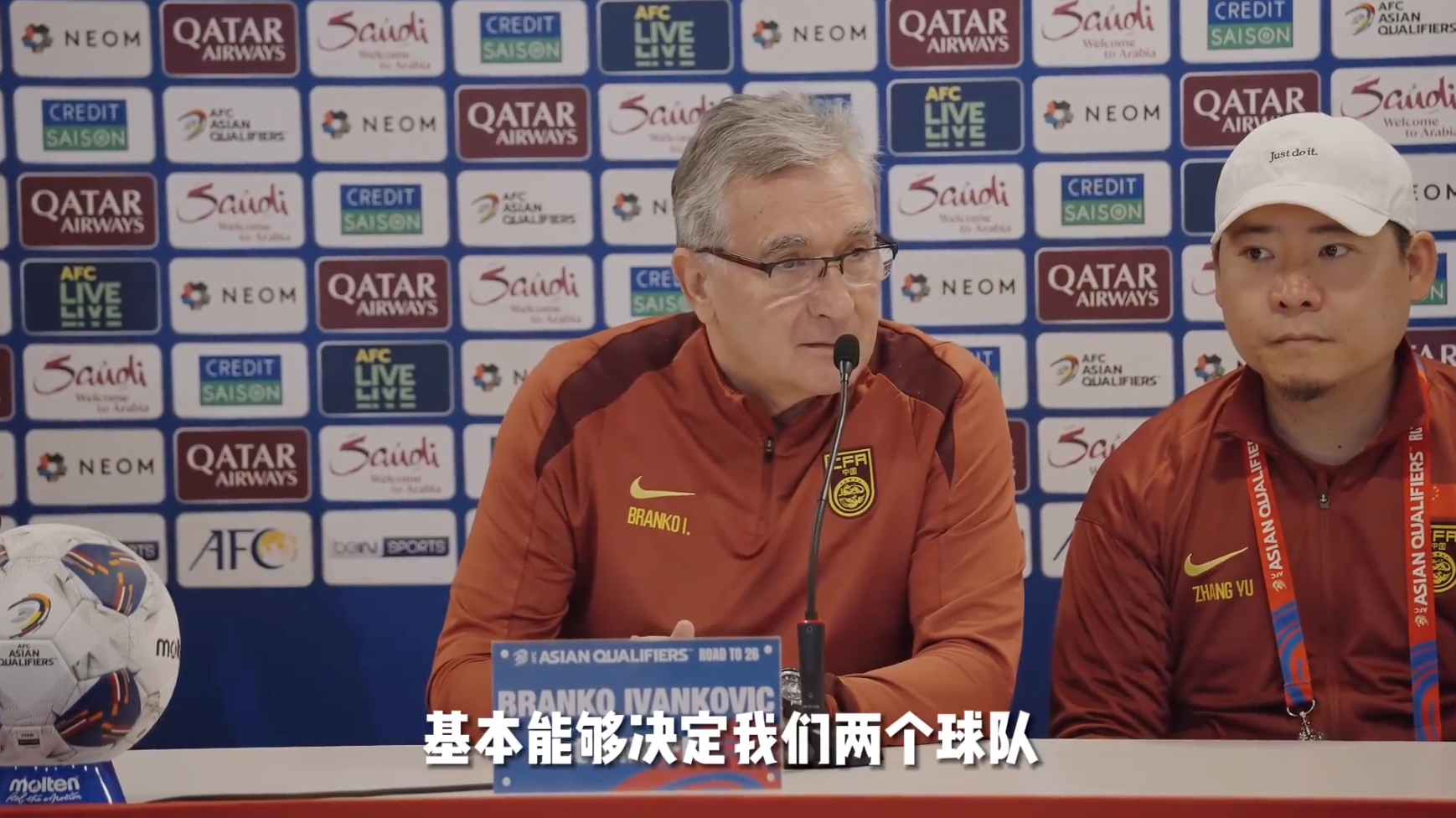 “我们带着雄心来到这里,所有人站在一起。”主教练伊万科维奇携蒋圣龙参加赛前新闻发布会。