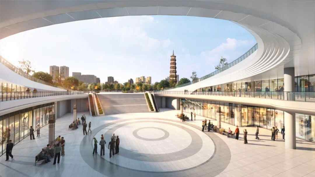 将园林和广场设为古塔的前景,未来,将在此处举办各式各样的活动,建筑与景观相互渗透,层叠台阶兼顾座位休憩、观赏功能,形成交互式多功能空间。
