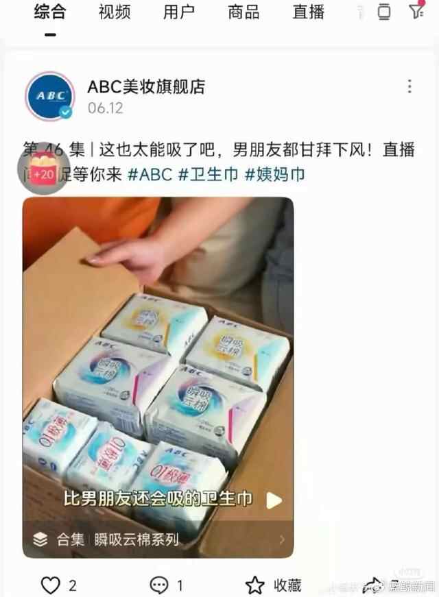作为女性用品,ABC卫生巾近日却因“擦边营销”惹怒了女性消费者。不少网友对此表示强烈不满,目前该账号下已无相关内容。