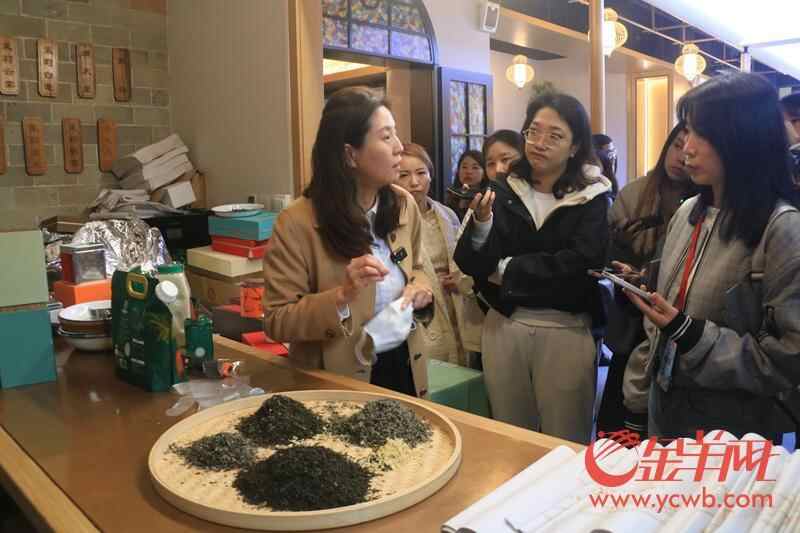 老津卫品牌负责人迟兴美向记者介绍老津衛茉莉花茶