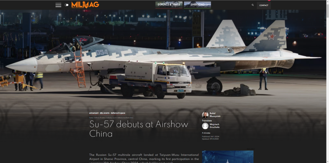 据Milmag提供的文字描述,该图片展示的是“北京时间2024年11月3日,俄罗斯苏-57多用途飞机降落在中国山西省太原武宿国际机场”。