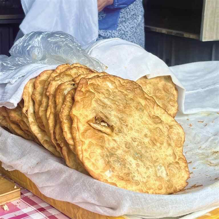 如果你担心一份盖浇饭吃不饱,可以提前在位于同一条巷子的“爷爷奶奶肉饼”买上一个肉饼。这家店同样是城关区的老店,深受拉萨群众的喜爱。肉饼脆而不油,面粉和肉馅的香气完美融合。建议上午12:00前去,这家店铺通常卖完肉饼就早早关门啦!