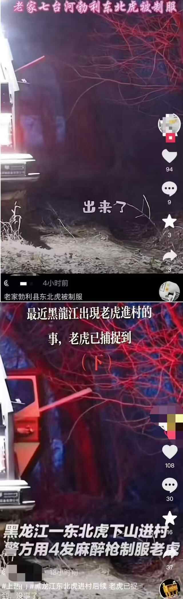 记者注意到,11月19日开始,在社交媒体平台有多名网友发布老虎被成功处置的视频,并配文“七台河勃利县老虎”“黑龙江勃利县老虎后续来了”“勃利县东北虎被制服”等相关表述。在这些视频评论区,不少网友纷纷留言询问详细进展,也有不少网友对视频提出质疑。