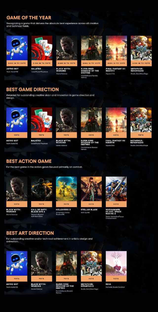 此前,2024年度游戏大奖(TGA)也通过官方微博公布了各类奖项的提名名单。