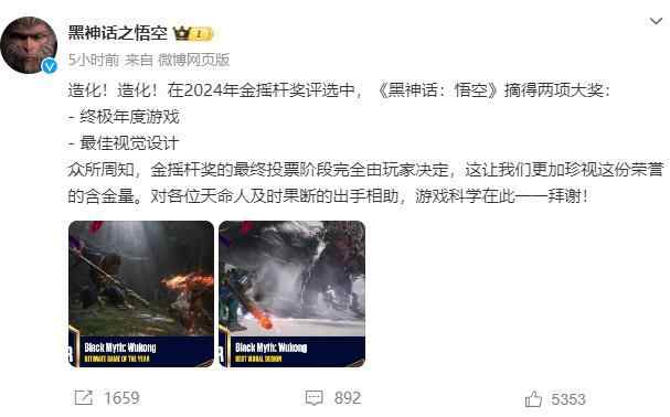 凌晨,游戏制作人、开发商游戏科学CEO冯骥@Yocar-冯骥 微博发文中表示:“再次感谢大家的出手相助!《黑神话:悟空》获得了第42届金摇杆的终极年度游戏。据说42是生命、宇宙以及任何事情的终极答案。对了,今年我刚好也……42。难道,这就是天命吗?”