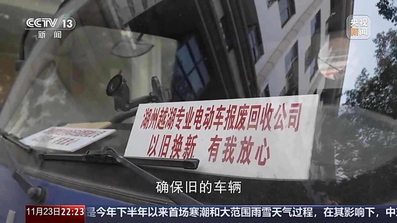 浙江湖州市场监督管理局产品质量安全监督管理处副处长 唐丹:所有的旧车都是直接交到回收公司,进行报废拆解,然后出具相应的报废回收证明,商家才能享受到先行垫付的补贴,确保旧的车辆不会二次流入市场。