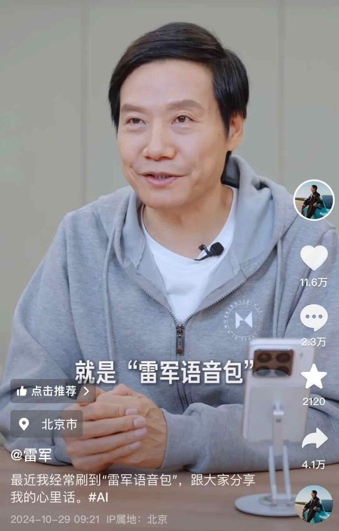 对此,雷军公开回应称:“最近两年,AI特别特别火,技术进步特别特别快。前段时间我在刷抖音的时候,经常看到很多人在玩‘雷军语音包’。有网友跟我投诉,说国庆期间被我连续‘骂’了7天,的确让我挺困扰,也挺不舒服的。”