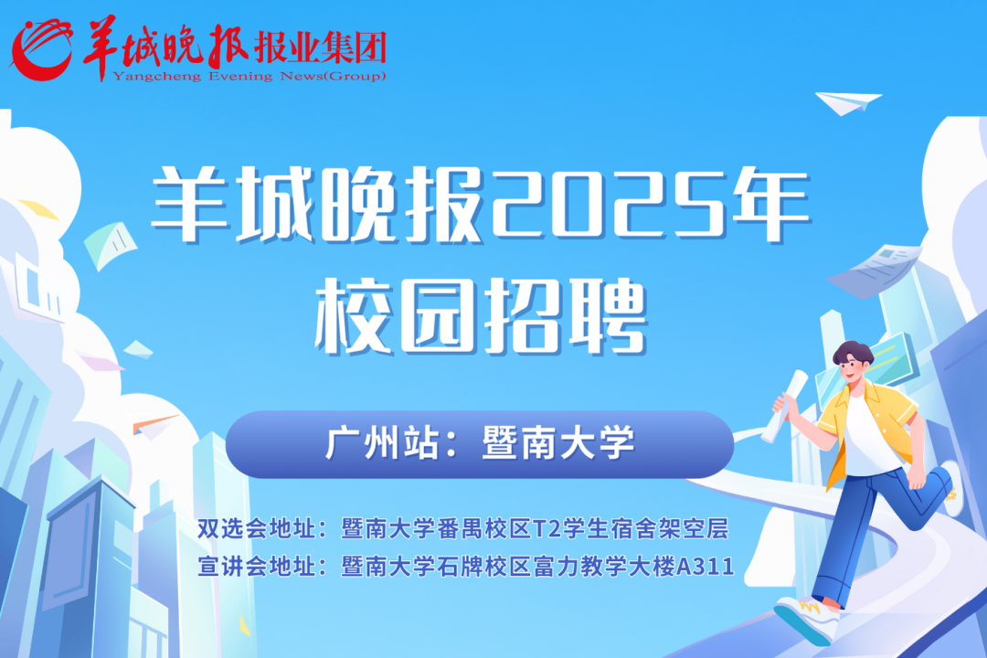 羊城晚报报业集团(羊城晚报社)2025年校招双选会、宣讲会——暨南大学站预告来啦~