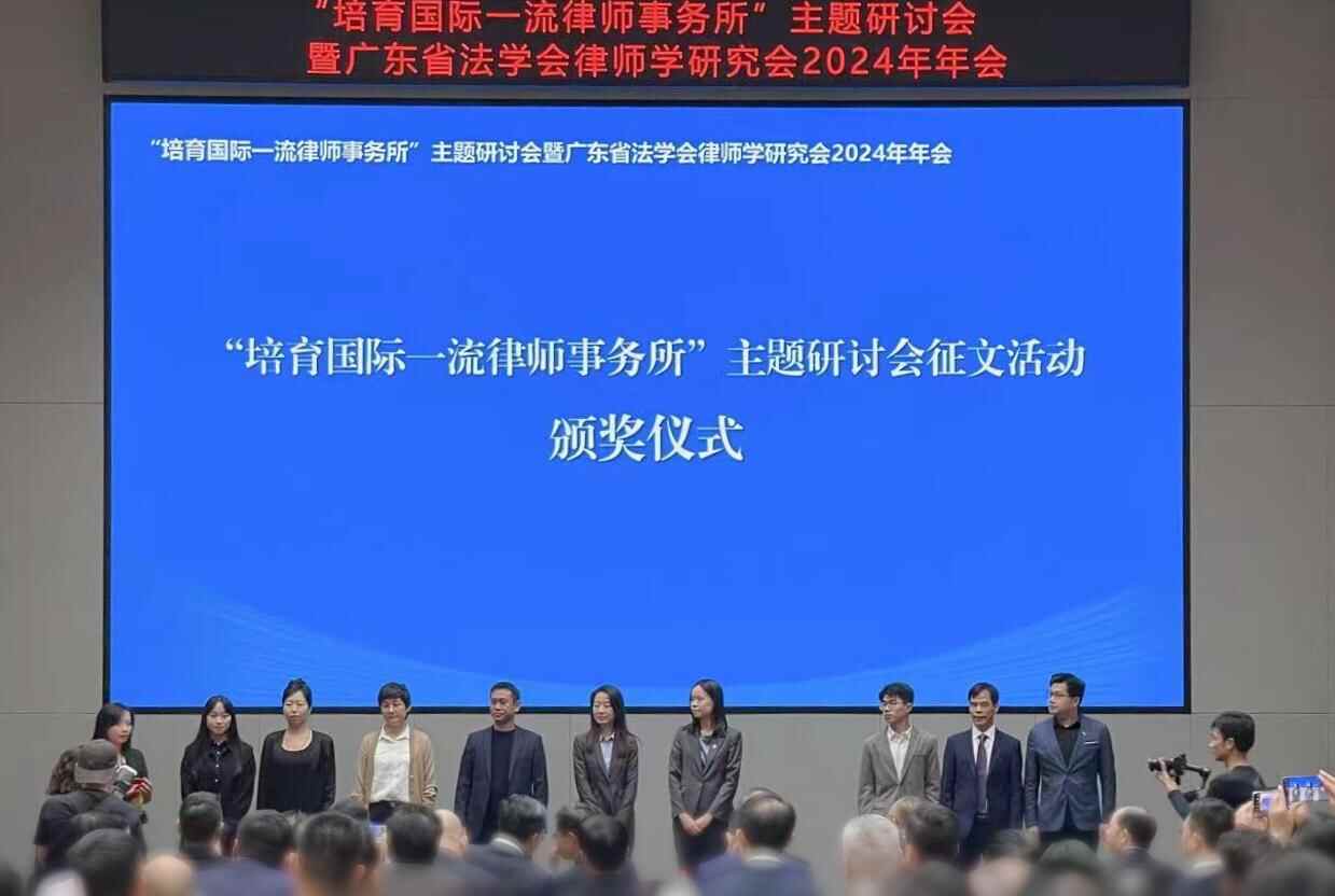 近日,“培育国际一流律师事务所”主题研讨会暨广东省法学会律师学研究会2024年年会在广州举办。来自全国各省市、港澳地区与国外等地近200名律师学专家学者等齐聚一堂,共话国际一流律所培育。会上,研讨会征文活动获奖名单出炉,共27篇论文作者分获不同奖项。