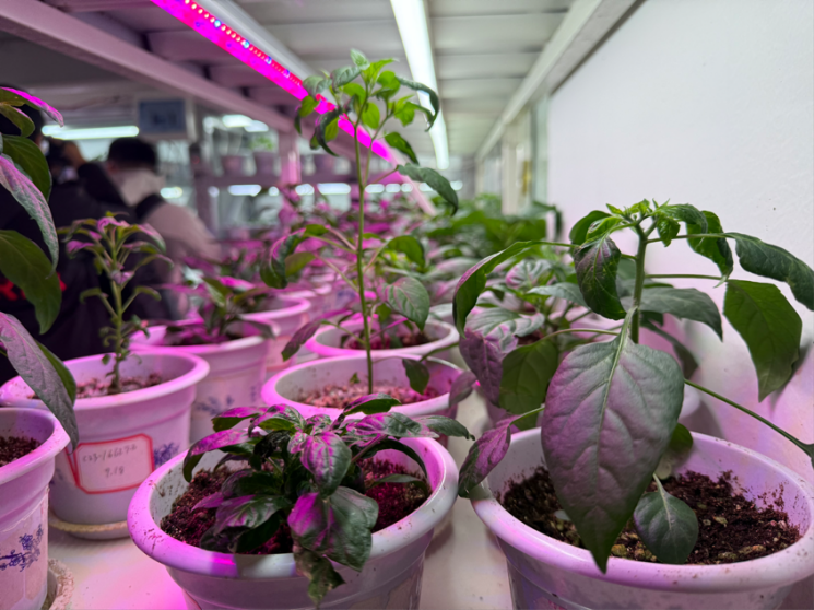 走进湘研种业的人工气候室,模拟太阳光照的三色灯光,正映照着一排排辣椒幼苗,科研人员正在细致地查看并记录幼苗的生长情况。屋内,温度、湿度、光照等都可以经由电脑自由调节,为辣椒提供最佳的生长环境,辣椒的育种时间大幅缩短。
