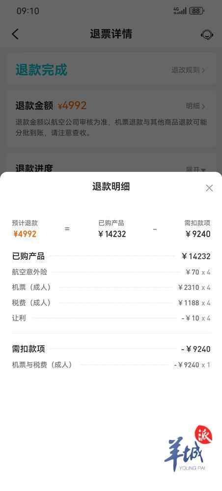 “买了机票发现选错了时间,马上申请退票就被扣了这么多钱。”珠海市民周先生今天向羊城晚报记者回想起本月初购买国际机票的遭遇时说,他花14232元在“去哪儿旅行”App平台上购买国际机票,发现选错时间后,马上申请退票,最终被扣款9240元,仅退回4992元。