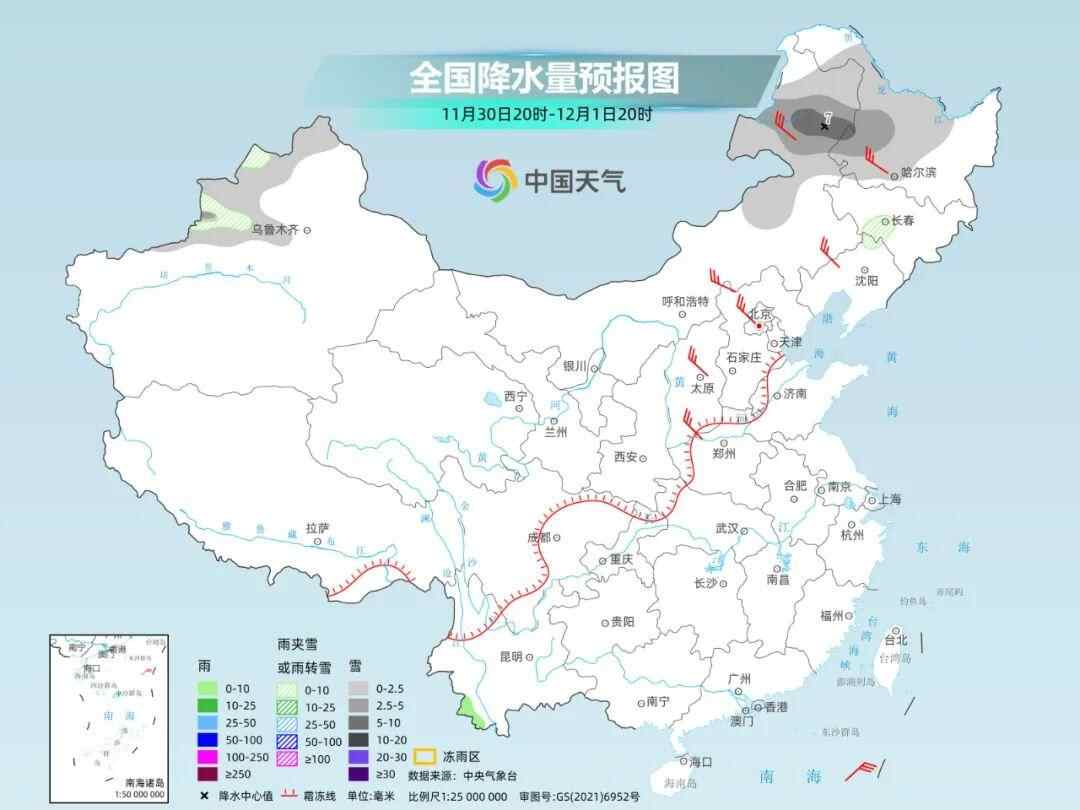 受新一股较强冷空气影响,12月1日起,内蒙古东北部、东北地区等地又将迎来小到中雪天气,其中内蒙古东北部、黑龙江中北部、吉林东部等局地又会有大雪或暴雪(累计5-12毫米),主要降雪时段将是在1日。