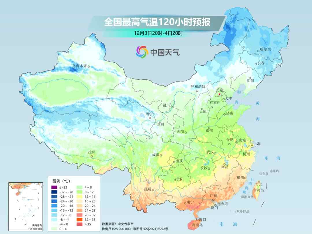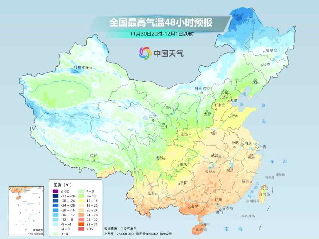 今天开始各地最高气温会陆续回升到较常年同期偏高水平,北方气温高点多在11月30日-12月1日,南方高点在12月1日-2日。
