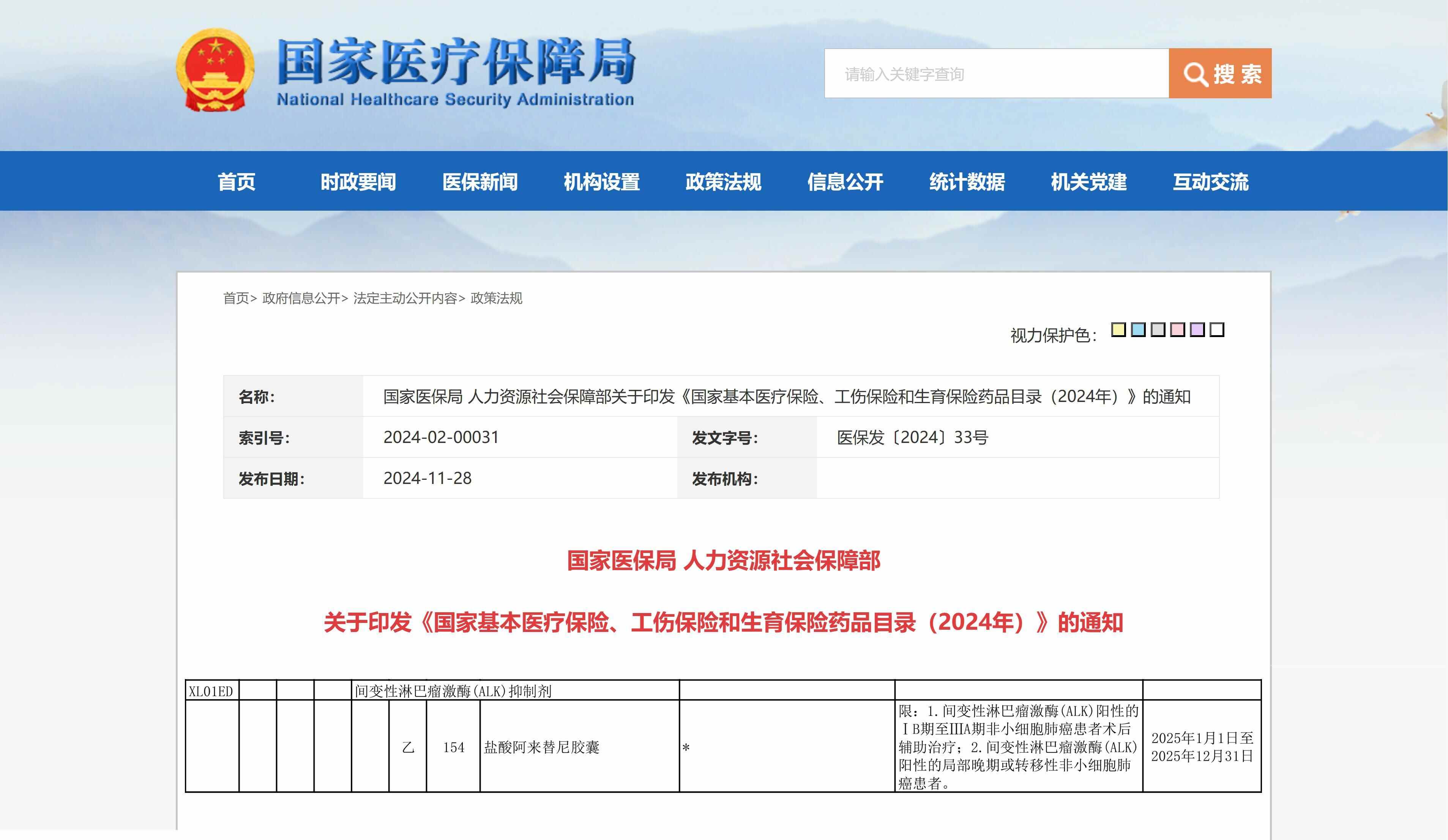 日前,国家医保局公布了《国家基本医疗保险、工伤保险和生育保险药品目录(2025年)》(以下简称“国家医保目录”),安圣莎®(通用名:阿来替尼)ALK阳性早期非小细胞肺癌(NSCLC)术后辅助治疗适应症成功纳入新版国家医保目录,此举将惠及更多中国ALK阳性早期肺癌患者,同时实现了ALK阳性NSCLC患者从早期到晚期的全线覆盖,为中国肺癌患者照亮希望。