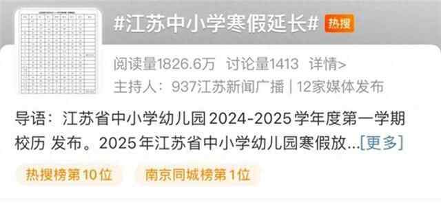 除了即将到来的春节,家长、学生们最关心的假期当然是寒假。日前,江苏中小学寒假延长的消息,冲上热搜。