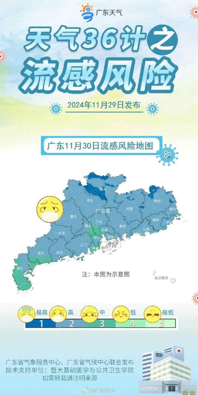 今明两天(11月30日、12月1日)全省大部早晚气温依然会维持在较低状态,流感风险仍高。请注意防护!