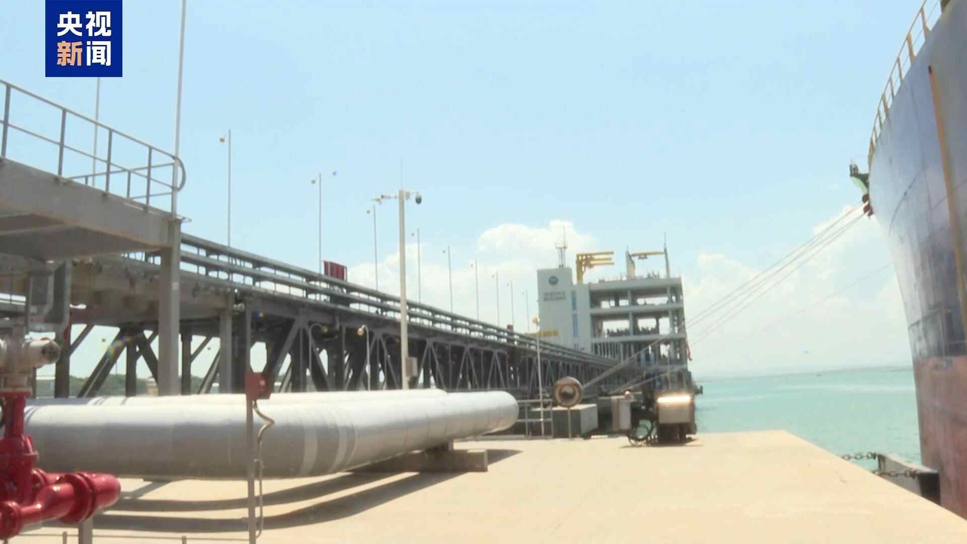 总台记者 李晔:我身后有一搜油轮正在进行卸油作业。这个新建的油码头共有4个泊位,其中两个是17万吨级,两个15万吨级。KOT油码头建成以后,比以前的老码头油的装卸效率提高了8倍以上。