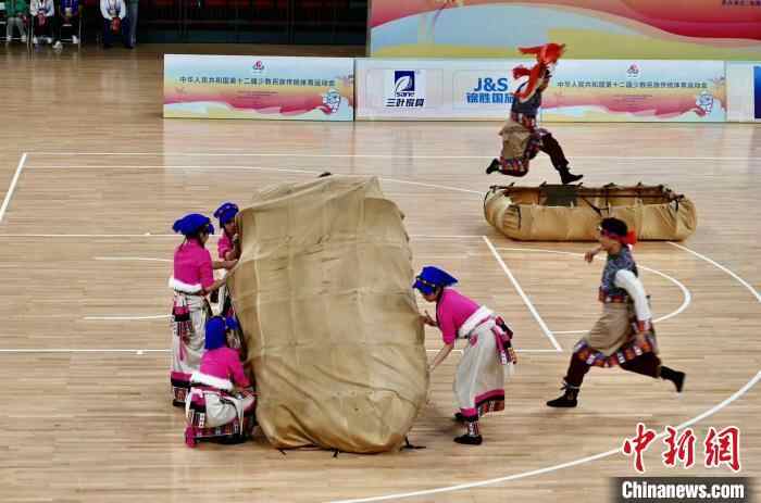11月23日,海南三亚,《羌铃赛》亮相第十二届全国少数民族传统体育运动会。王利文 摄