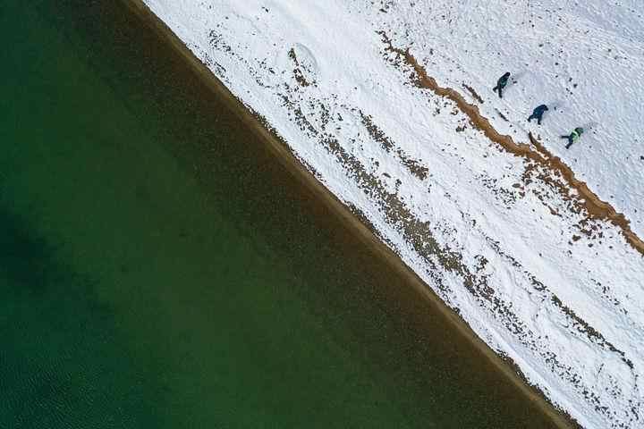 2021年10月20日,在青海省果洛藏族自治州玛多县扎陵湖乡勒那村,三江源国家公园黄河源园区生态管护员在巡护(无人机照片)。 新华社记者 张龙 摄