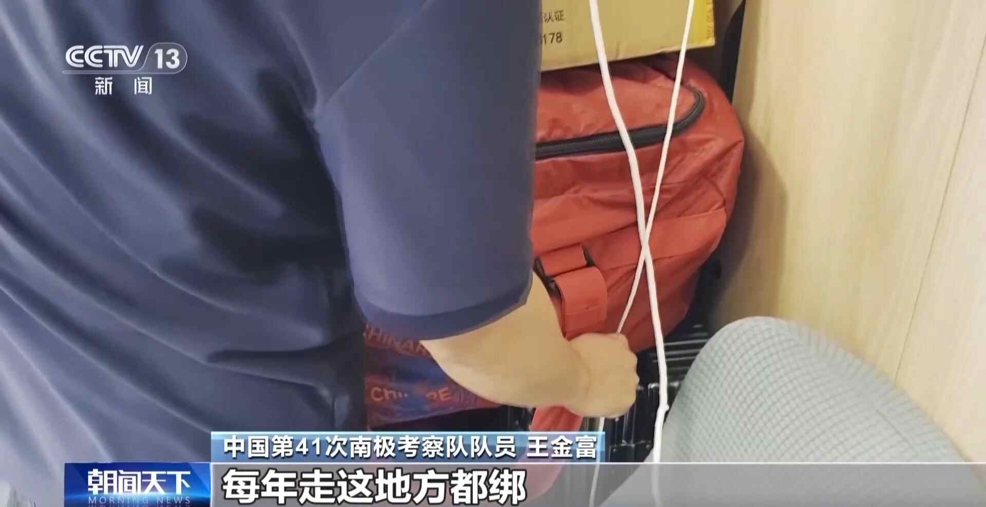 11月17日下午的一则全船广播,让队员们紧张了起来。在王金富的房间,他正在用绳子将椅子和行李缠在一起,这已经是他第二次执行南极任务了。